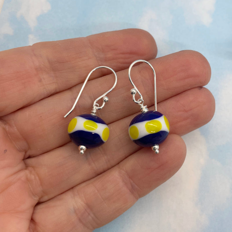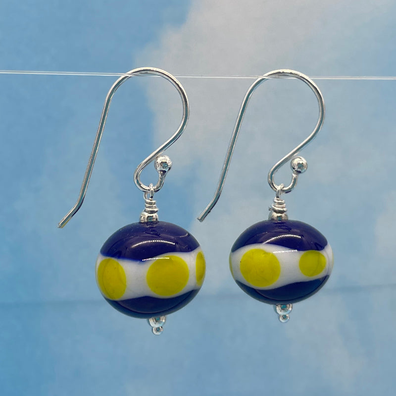 Each orbit bead measures approximately 14 mm x 12 mm. They hang on (nickel free) sterling silver ear wires for a total length of approximately 25 mm.