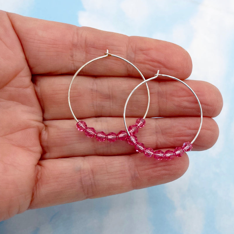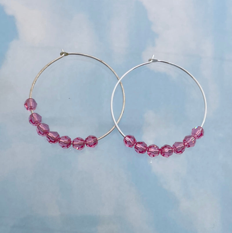 Swarovski crystals on sterling silver hoops, light, very sparkly and elegant. Sparkle if good, especially in this season.