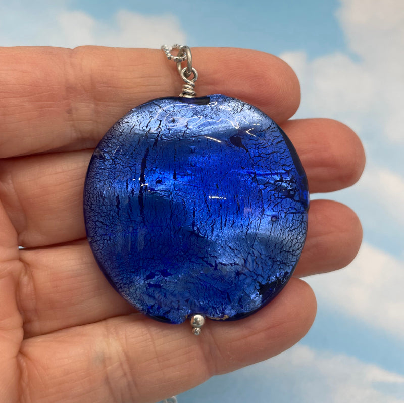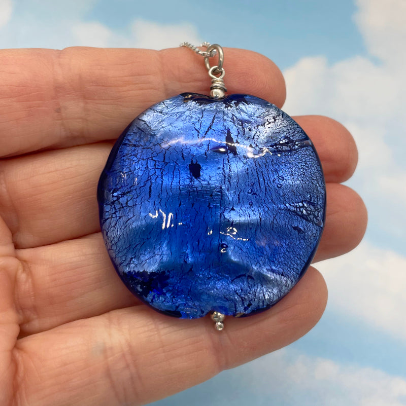 This extra large evening blue pendant is approximately 42 mm x 42 mm.
